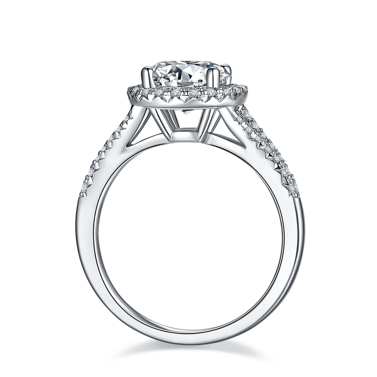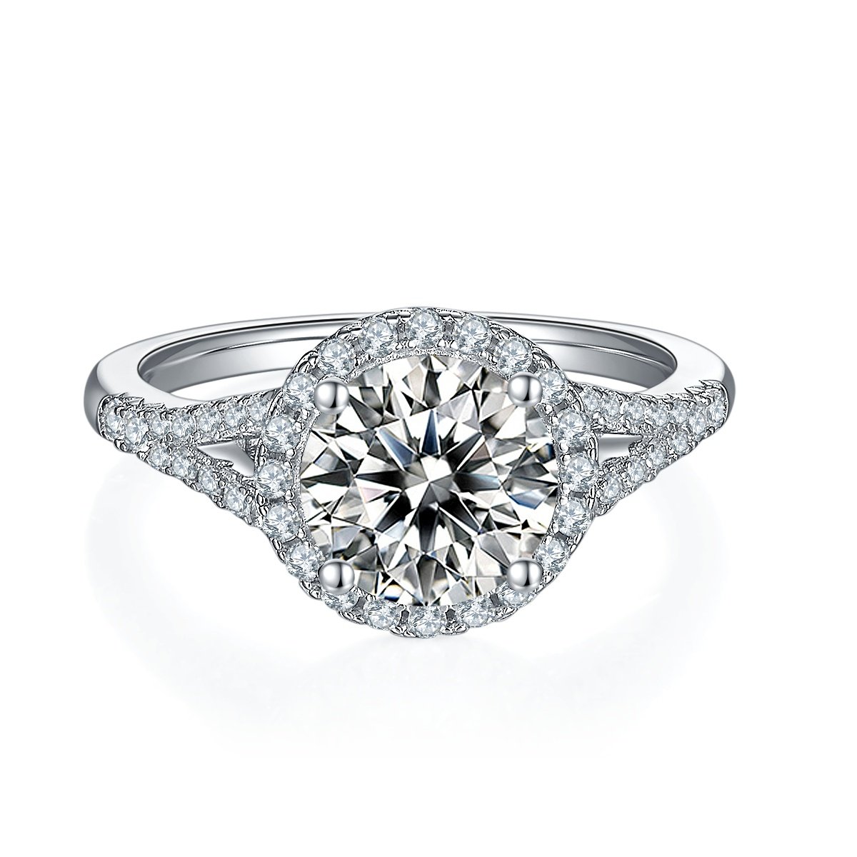 Moissanite size: 2 Carats Metal material: Platinum-plated S925 silver Size :US 5, 6, 7, 8, 9 size rim Weight: 2.9 grams Packaging: Gift box packaging Certificate: GRA certificate