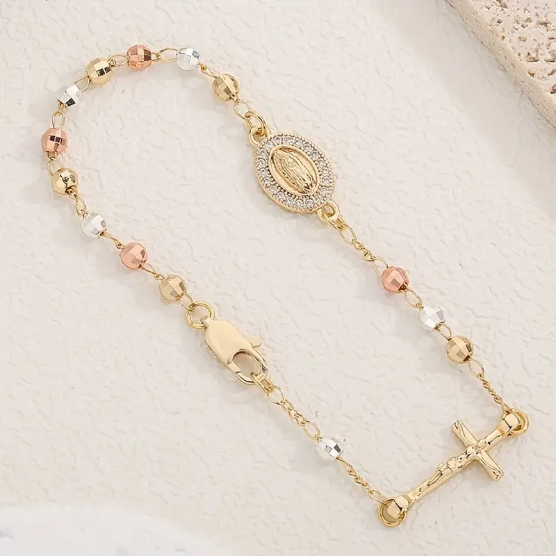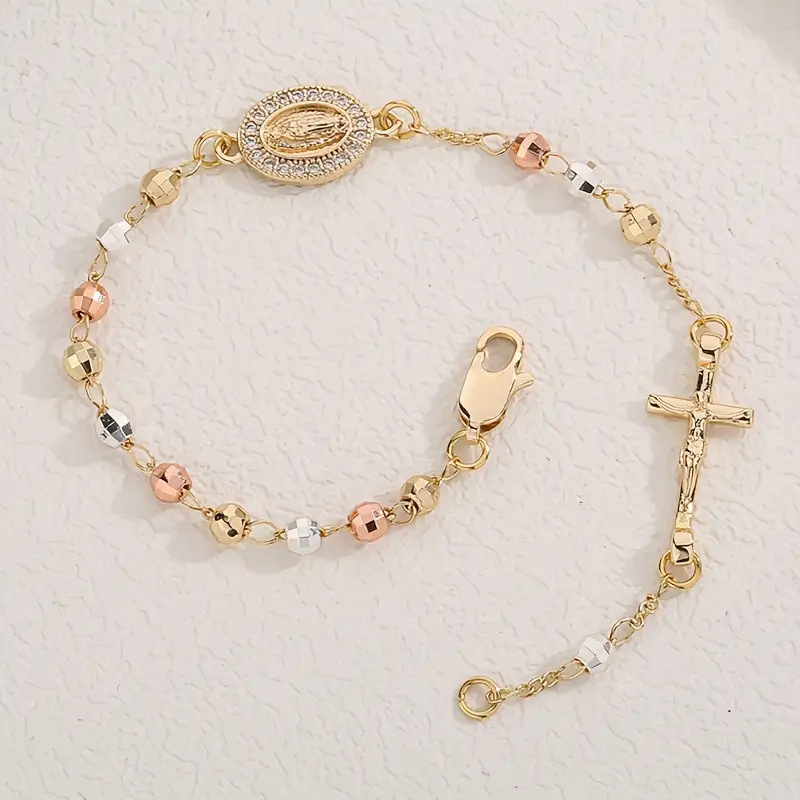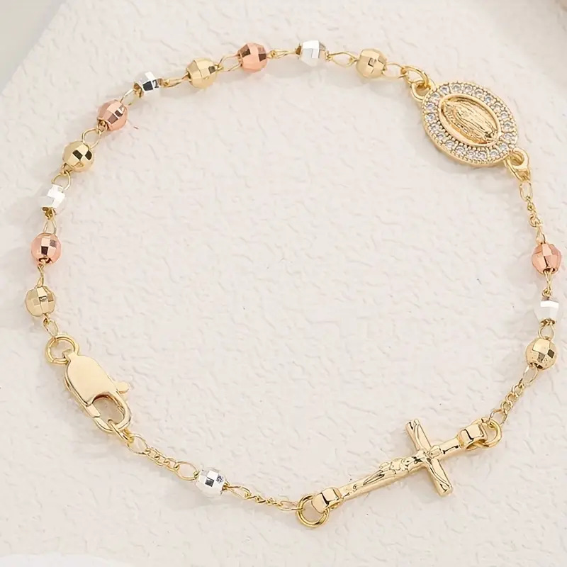 Product information: Processing Technology: Real Gold Plating Colour: Gold Style: Women’s Material: Copper Design: Geometric Trendy Elements: Cross, Circle Style: Personalized/Unique Packing list: Bracelet×1pc Product Image: